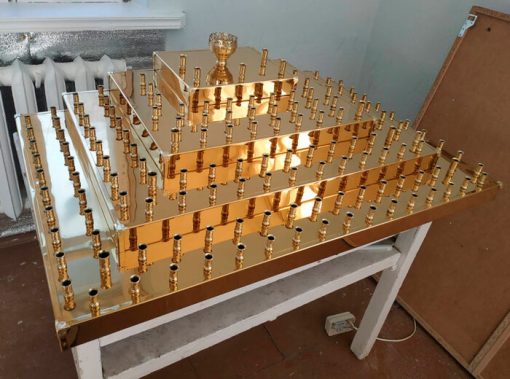 Изготовим на заказ крышку канун в форме пирамидки, с лампадкой и Голгофой или без неё, из булата. Может быть установлено разное количество свечей. Размеры оговариваем по контактам на сайте.